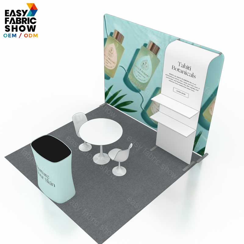 This 3x3m aluminum frame booth features a sturdy and lightweight structure ideal for versatile exhibition setups. Equipped with a multi-layer shelf, it offers efficient storage and display options to organize materials neatly and accessibly. Designed for quick assembly and durability, this booth supports professional presentations while optimizing space usage. Perfect for trade shows, retail events, and promotional activities requiring reliable and functional booth solutions.
