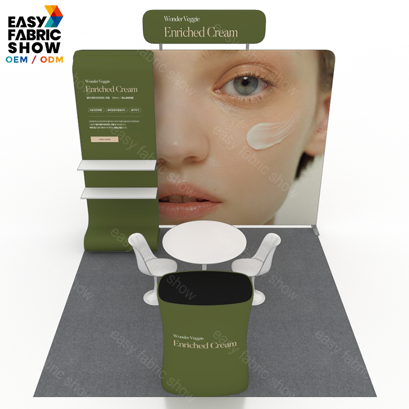 This 3x3m aluminum frame booth features a sturdy and lightweight structure ideal for versatile exhibition setups. Equipped with a multi-layer shelf, it offers efficient storage and display options to organize materials neatly and accessibly. Designed for quick assembly and durability, this booth supports professional presentations while optimizing space usage. Perfect for trade shows, retail events, and promotional activities requiring reliable and functional booth solutions.