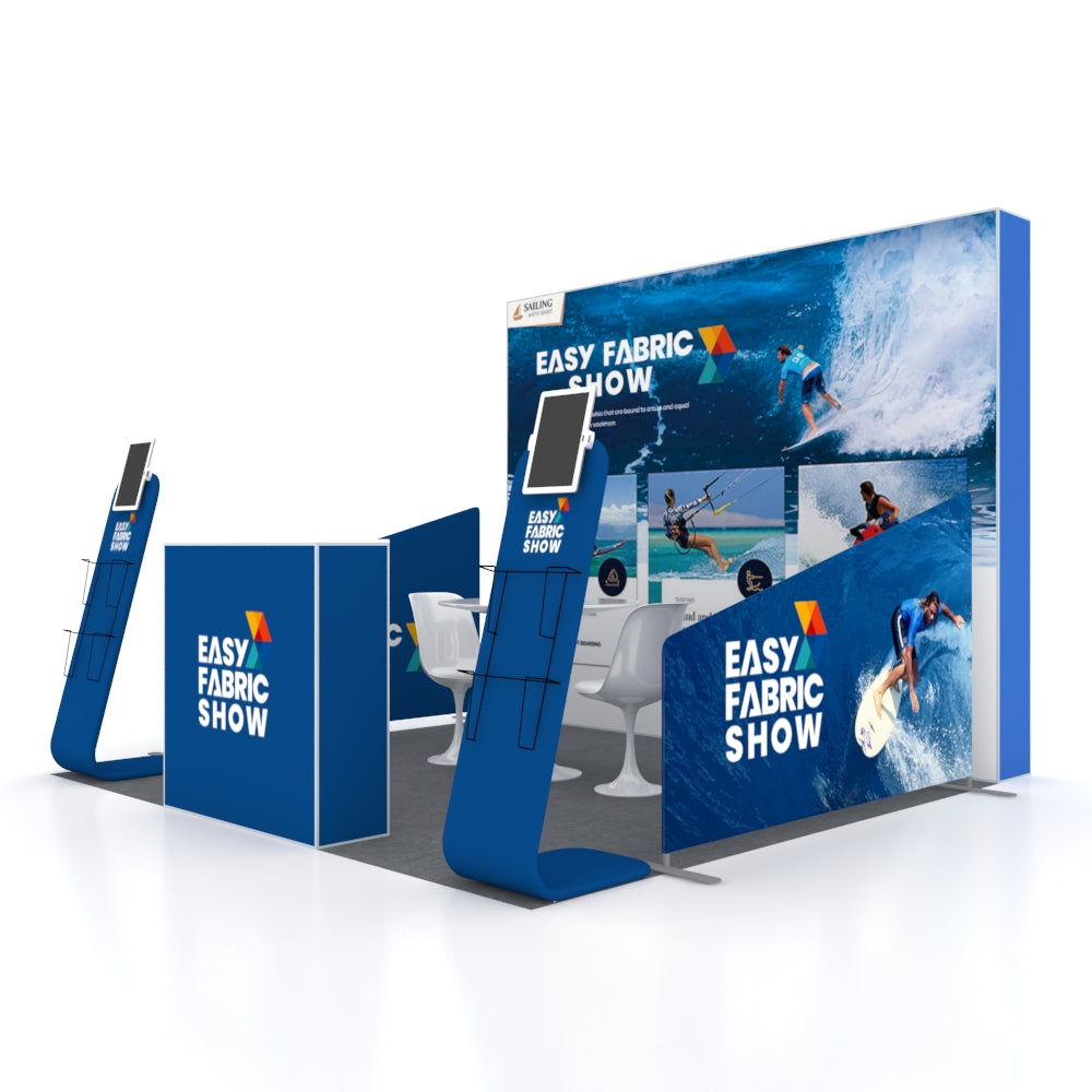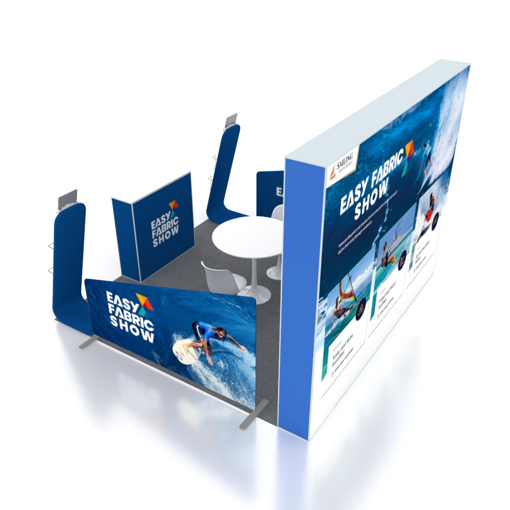• Customizable fabric prints to match your branding, messaging, or promotional content