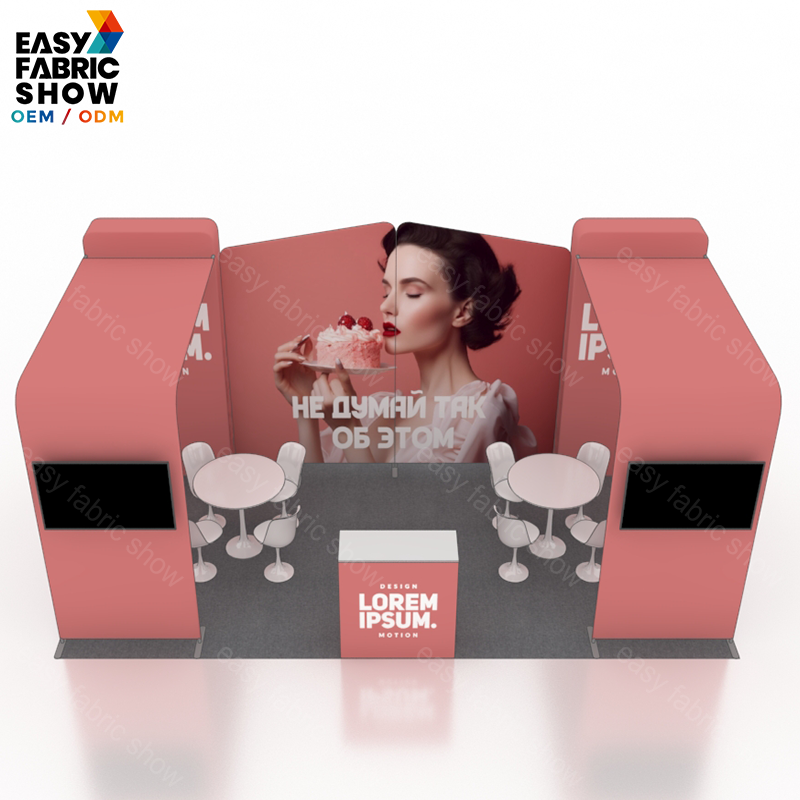 • Customizable fabric prints to match your branding, messaging, or promotional content