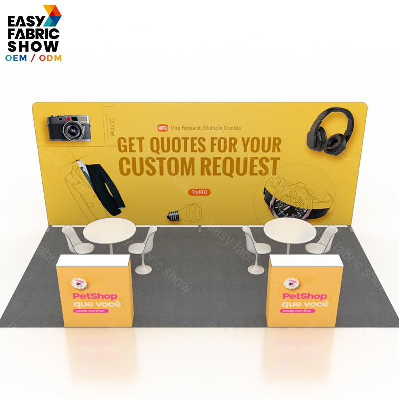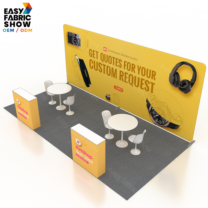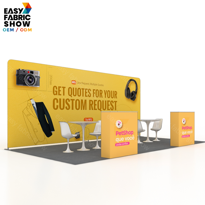 Includes multiple printed fabric backdrops with cotton bags for flexible branding and easy transport - 3 x Led --Equipped with three LED display lights to illuminate key areas and boost visual impact