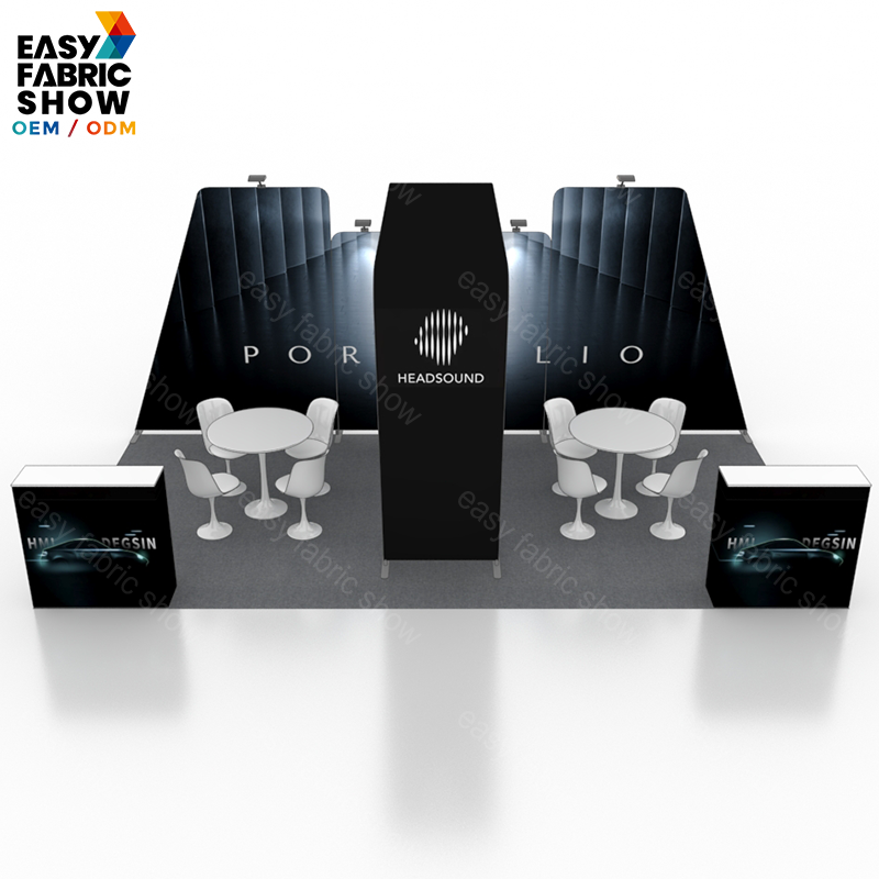 Includes multiple printed fabric backdrops with cotton bags for flexible branding and easy transport - 3 x Led --Equipped with three LED display lights to illuminate key areas and boost visual impact