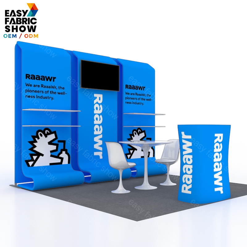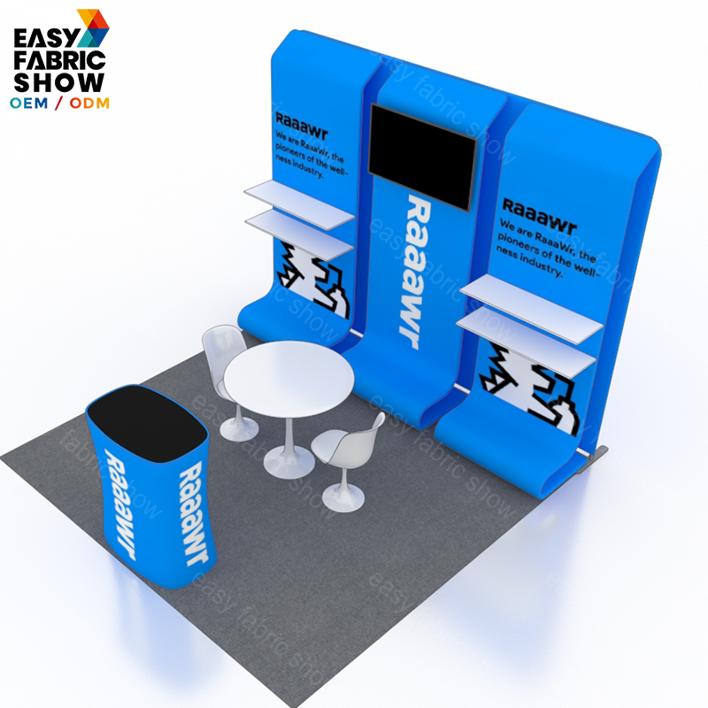 3*3m Aluminum Frame Booth with Fabric Panels, Integrated TV Mount & Shelving